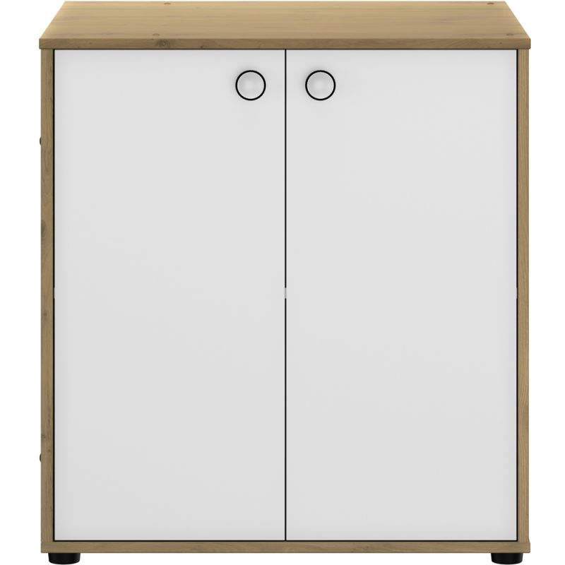 - En panneaux de particules revêtus de papier uni blanc imitation chêne artisan.