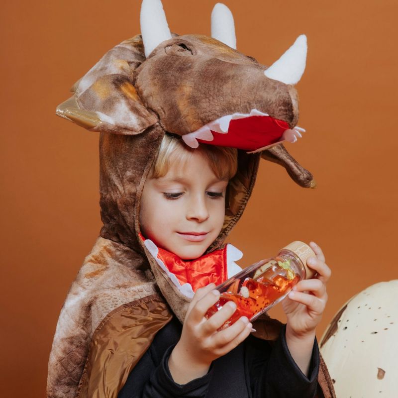 Le roi des dinosaures est sorti de son oeuf et trône majestueusement au coeur de notre bouteille sensorielle Move spéciale. Une danse calme et immersive. Le doux mouvement des gouttes de liquide coloré fascinantes éveille les sens, favorisant la relaxation et l’émerveillement.